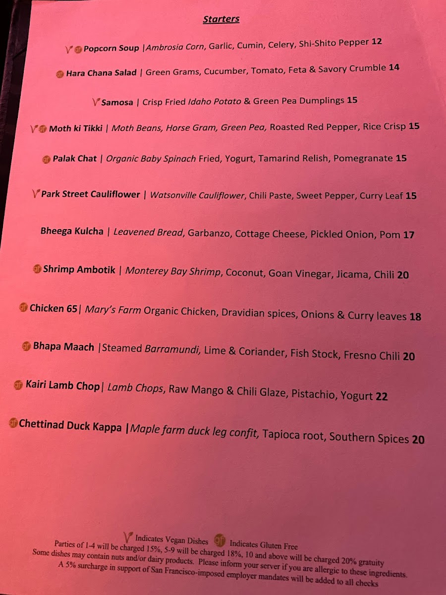 - Murgh Parda Biryani - A regal dish featuring organic chicken and spiced rice cooked dum-style, it's an intricate blend of flavors that will take you on a culinary journey for US$32.